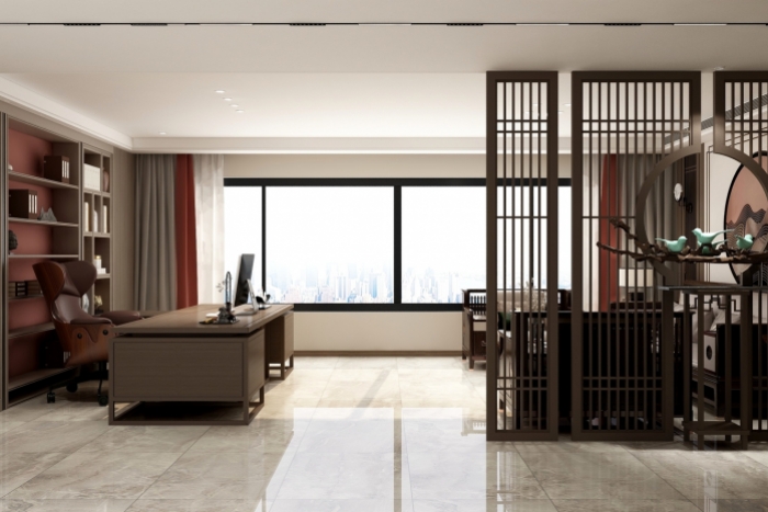 新中式工作室裝修設計案例通常融合了傳統(tǒng)中式元素與現(xiàn)代設計理念,旨在創(chuàng)造既具有文化底蘊又不失現(xiàn)代感的工作環(huán)境。 注重功能分區(qū),合理規(guī)劃辦公區(qū)域、會議室、休息區(qū)等空間,以滿足不同功能需求。保持空間的開闊與通透,增加自然光照,營造舒適的工作氛圍。